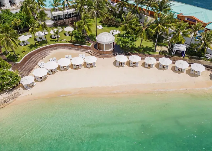 5-звездочный Moevenpick Hotel Mactan Island Cebu Punta Engano с открытым бескрайним бассейном расположен в 6 минутах ходьбы от Шангри-Ласа Мактан Резорт энд Спа.